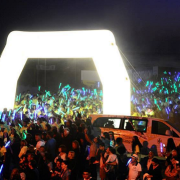 Lá dentro, misturado com painéis LED, lâmpadas tubulares e projetores, vai material da primelux – new lighting experience muito frágil (porque contém emoções e boas energias).